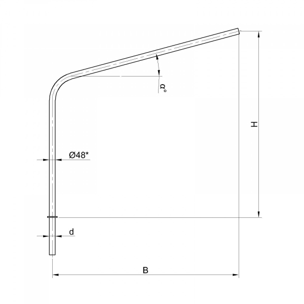 Однорожковые кронштейны К2-2,0-2,0-0-1 предназначен для крепления светильника на трубчатой опоре освещения. Завод опор освещения «Альдекс» изготавливает однорожковые консольные кронштейны из стального проката. Собственное производство позволяет выполнять изделия надлежащего качества и в кратчайшие сроки. Конструкция однорожковых кронштейнов К2-2,0-2,0-0-1. Конструкция консольных однорожковых кронштейнов К2-2,0-2,0-0-1 представляет собой гнутую металлическую трубу заданных размеров.